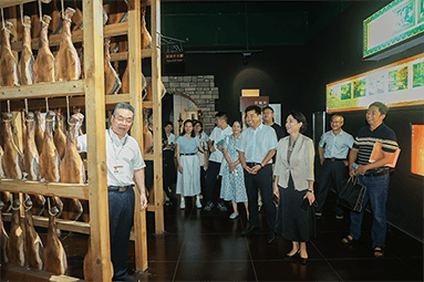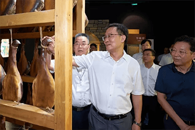8月22日,金華市委書記朱重烈專程赴金字火腿公司調(diào)研金華火腿產(chǎn)業(yè)振興工作。朱書記在公司領(lǐng)導(dǎo)周國(guó)華、馬曉鐘、吳月肖陪同下,走進(jìn)火腿文化展示館和產(chǎn)品展廳。